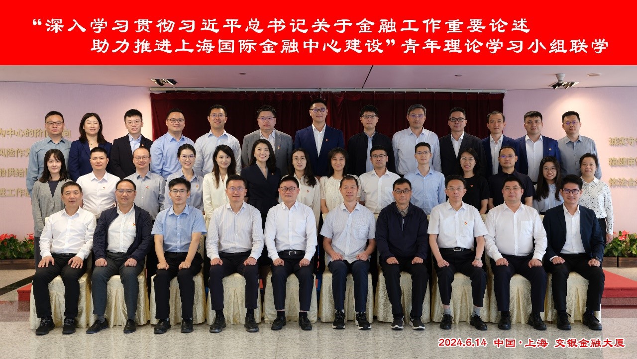 2024年6月14日,由中央和国家机关工委旗帜杂志社、中国金融思想政治工作研究会作为指导单位,交通银行机关党委牵头联合中央党史和文献研究院机关党委、中国社会科学院金融研究所党委、国务院发展研究中心金融研究所党委、上海市委金融办和市金融工作党委、复旦大学智库总支部委员会,在上海举办“深入学习贯彻习近平总书记关于金融工作重要论述助力推进上海国际金融中心建设”青年理论学习小组联学活动。